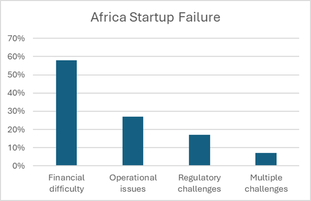 While Africa is struggling in the tech sector, it cannot be said to be a passive observer. Things are changing and are moving faster than before. For instance, Partech Africa 2022 report shows that African startups raised around $4.8 billion in funding, and Nigeria, Kenya, Egypt and South Africa—accounted for 72% of it. This figure is significant because that amount was achieved despite reduction in global funding. In a similar trend, report also indicated that more than half of African startups fail within their first three years (Startup Genome, 2023). The chart below highlighted some key reasons for their failure as against the percentage rate of failure.